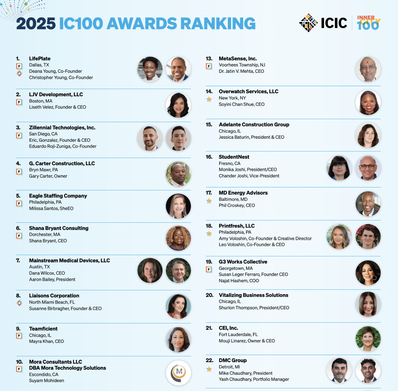 Every year, the Initiative for a Competitive Inner City (ICIC) identifies, ranks, and spotlights 100 of the fastest-growing businesses in under-resourced communities across the nation. These companies are experiencing rapid growth and are making a meaningful impact in their communities.